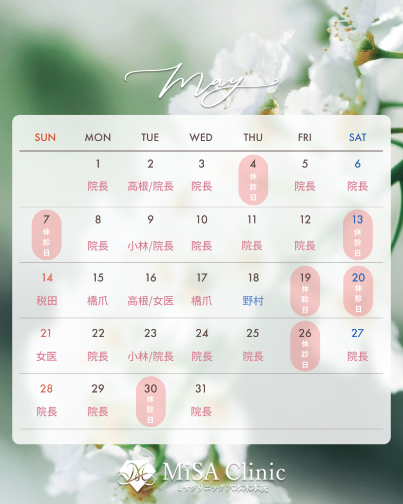 5月の診療カレンダーを公開しました